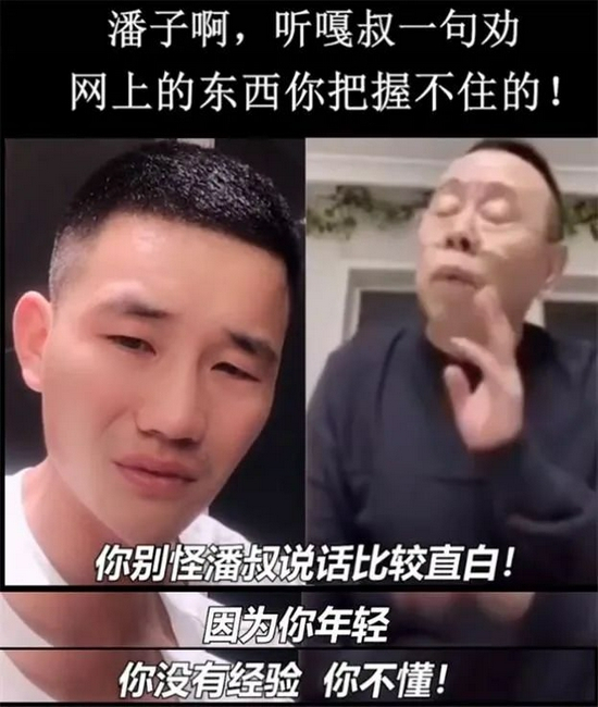 接下来,经典的一幕出现了。像是对好流程的综艺节目一样,潘长江很快连麦了谢孟伟,在直播间里对其进行了一番“正能量”思想教育:“网上的东西都是虚拟的,我怕你把握不住啊孩子,因为这里水很深,你年轻没有经验,你不懂……”