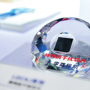 第十二届中国卫星导航成就博览会上展出的阵列抗干扰芯片(5月27日摄)彭昭之摄