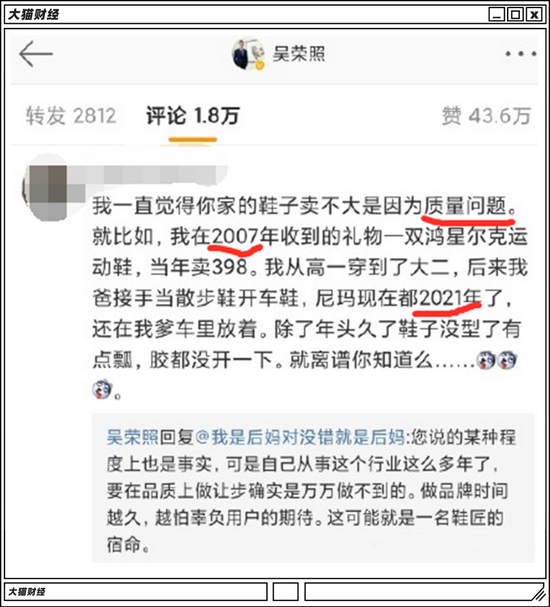 后来他意识到,当时吴家的鞋厂已经有四五百名工人,既不缺生产技术,也不缺研发力量,就是没有自己的品牌和销售渠道,所以每双鞋只能赚一点点,大头都让下游品牌拿去了,指着他们吃饭,十分被动。