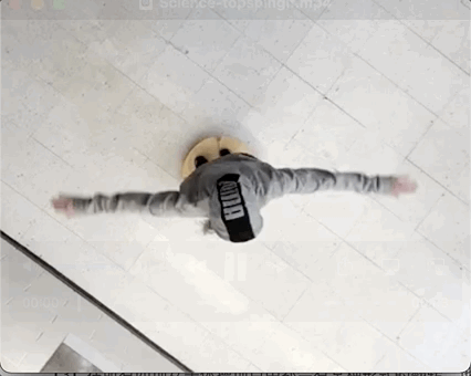 第三步:将手臂收起来,用脚推动旋转后缩离地面,这样是以零扭矩旋转。