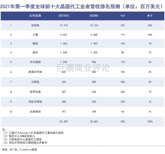 全球来看,目前10nm及以下制程工艺领域,仅有台积电、三星和英特尔三个玩家,他们属于绝对的第一梯队。其中,仅台积电一家就独霸了全球将近6成的市场份额,其地位和影响力无可撼动。