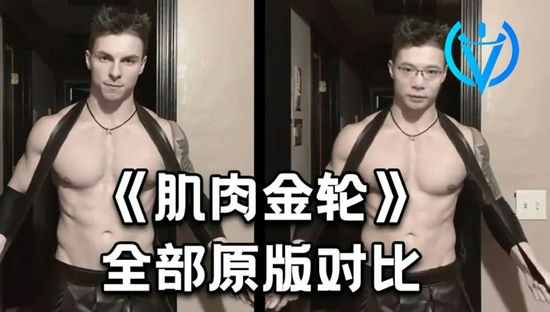 比如,前段时间在B站大火的“肌肉金轮”系列,就是网友把知名游戏主播的脸,换在了国外某个肌肉男网红的身上,其逼真程度一度让部分网友以为,自己一直关注的主播竟然私下健身并取得了这么好的效果: