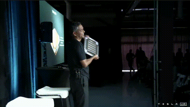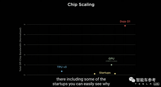 特斯拉发布会现场,还用图展示性能,拳打英伟达GPU,脚踢谷歌TPU。