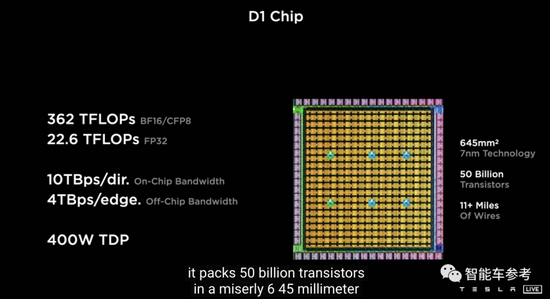 特斯拉首款AI训练芯片D1,正式发布。