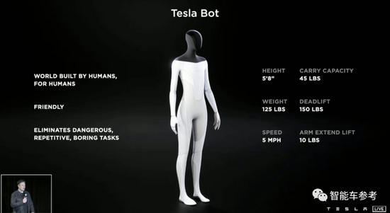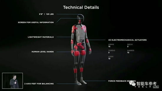 汽车机器人,搭载了特斯拉包含芯片在内的软硬件系统,但跟百度的不同,不像汽车更像人。