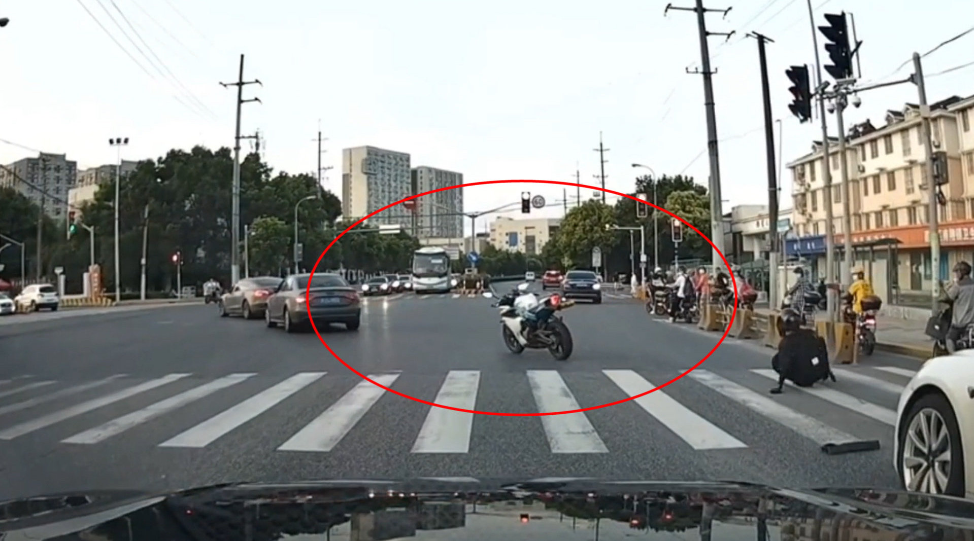现场曝光!摩托车被特斯拉追尾后 开启自动驾驶模式横穿十字路口