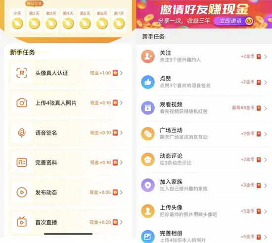 针对下沉市场的现金奖励,也是一些社交软件获取用户的渠道之一,字母榜发现,在他趣、同城速恋上新人注册、邀请好友都可获得现金奖励,“每日首次分享最高得999趣豆”、“日赚5000元当天可提现”等字眼,这种类似社交裂变的玩法,陈华觉得,有些偏离社交软件的初心,“很难说薅羊毛的用户能够真诚来交友”。