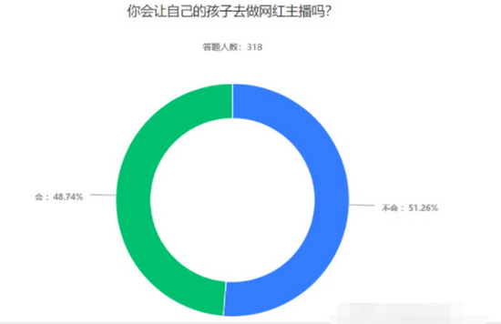 在一个调查中,有48.74%的家长支持孩子去做网红主播,有的还主动给孩子报了“网红培训班”。
