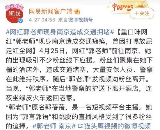 去年郭老师去南京旅游时,她的粉丝甚至堵了一条路,直接将她送上热搜。