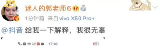 被抖音封号后,郭老师还在微博上喊冤:给我解释下,我很无辜。