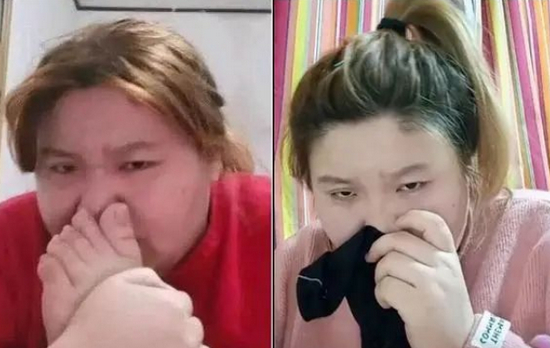 从此直播中露屁股、闻袜子、闻臭脚成为她的日常互动,而观众也为此买单。