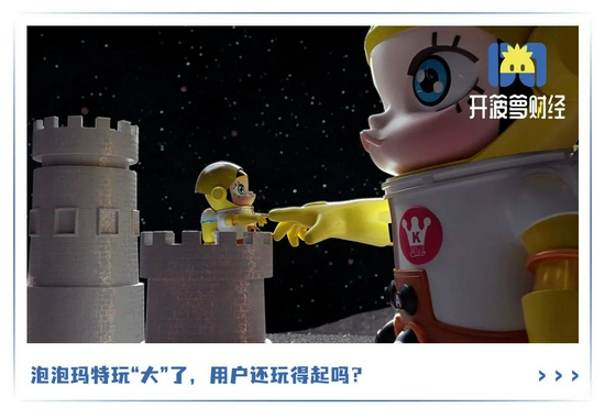 从盲盒切入固然是一步好棋,但当盲盒这样的普货慢慢变成快消品,惊喜感和收藏价值变弱,为了调动用户“往上够”的情绪,就需要生产更稀缺的新玩具。长期关注潮玩市场的投资人徐明宇表示,更精致的、更大体的手办,从制作工艺、运输要求到展示空间,都比原来的盲盒要复杂,产量却更少,填补了品牌过去针对“高圈层用户”的产品空白。