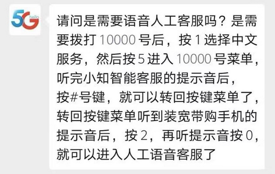 张瑜就曾在网上做过攻略,她的办法是在智能客服说:“人工客服坐席忙,请说出您的诉求”后,回复“投诉”就能马上直达人工客服。