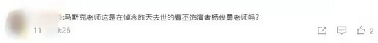 巧合的是,前一天饰演曹丕的演员杨俊勇刚刚去世,有网友称马斯克这是对杨俊勇的某种纪念仪式。