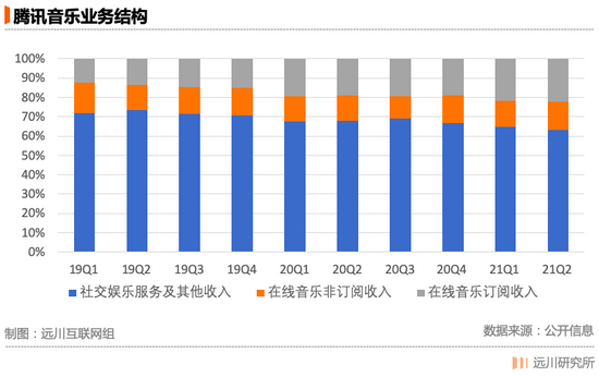网易云音乐的业务结构也是“音乐+社交”,并且社交娱乐的收入占比从2018年的10.6%上涨到了2020年的46.4%。但腾讯音乐有两个得天独厚的优势:一是曲库全面,二是背靠了腾讯社交巨大的流量池。