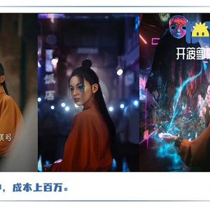 在这条两分钟的视频里,画面、剧情、特效都有电影质感,虚拟人和现实人流畅交互,亦幻亦真,兼具“赛博朋克和中式奇幻”风格的故事就此展开。