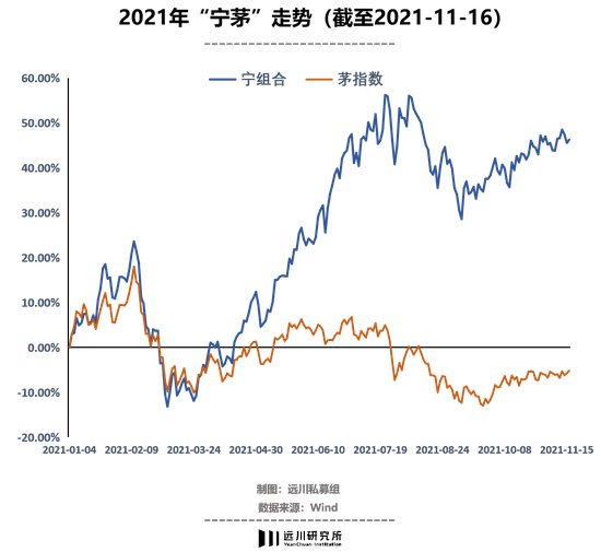 基金经理们割裂的表现,隐含了一层宏观环境分野的意味:去年的茅指数傲视群雄,多是因为无风险利率下行,市场追求确定性;而今年的逻辑演变为通胀预期引申而来传统龙头拔估值的约束,处于高景气的宁组合反而能够利用成长去消化估值。