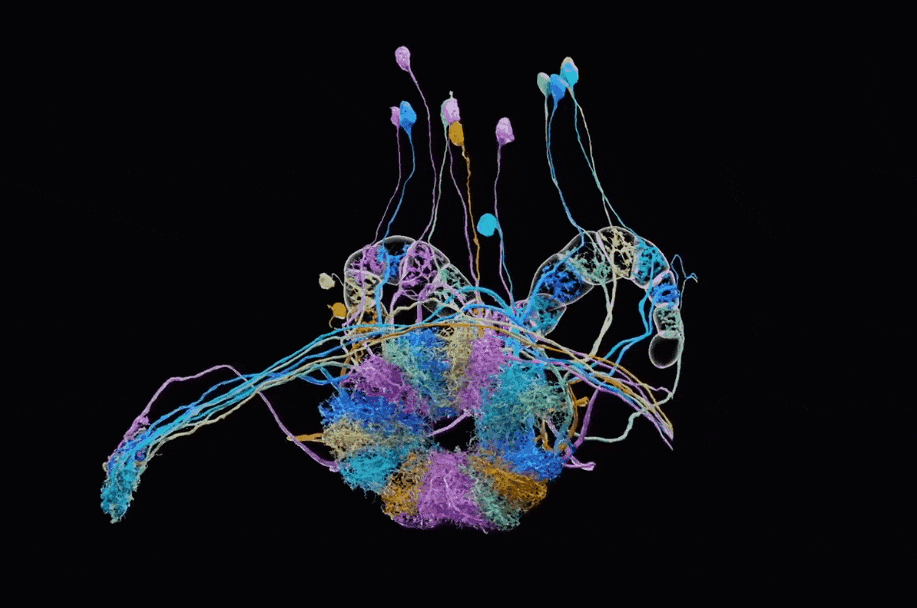 2020年,谷歌与Howard Hughes医学研究所的FlyEM团队等,发布了「半脑」连接组( 「hemibrain」 connectome),绘制的图像涵盖了25000个神经元,按体积计算,大约占果蝇大脑的三分之一。