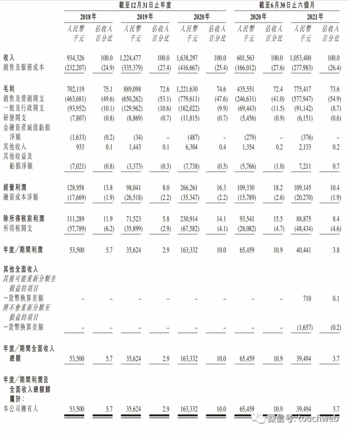 雍禾医疗2018年、2019年、2020年年度利润分别为5350万元、3562万元、1.63亿元;年度利润率分别为5.7%、2.9%、10%。
