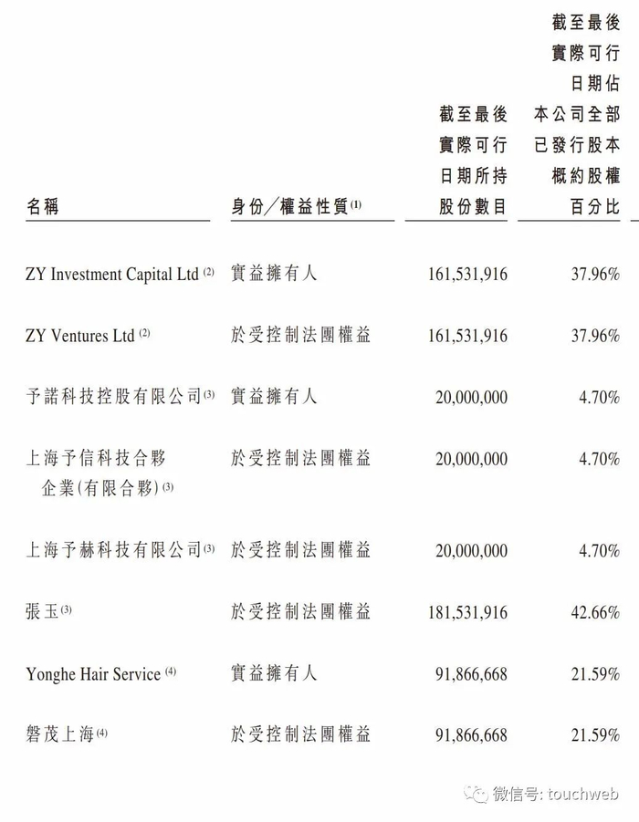 Yonghe Hair Service及CYH已在公司股东大会召开之前达成议定决定,并在公司股东大会上作出相同的投票决定。因此,Yonghe Hair Service及CYH可共同控制行使公司34.54%的投票权。