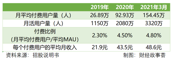 Soul招股说明书显示,其2019/2020年平均MAU分别为1150万和2080万,增长率为80.7%;到了2021年3月份,其平均MAU提高到了3320万,比2020年增长了59.6%。