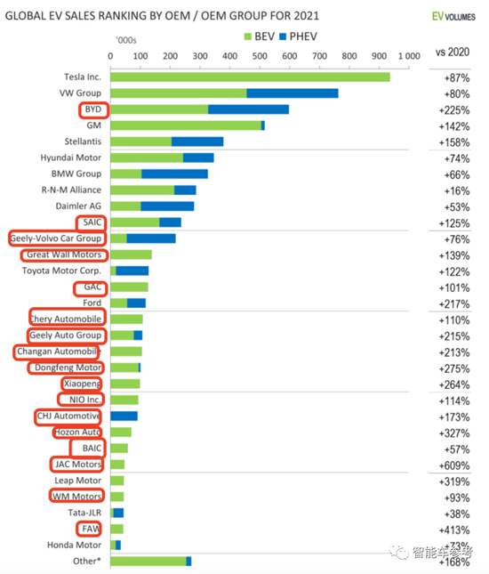 电动车销量上榜车企中,中国OEM也是最多的。