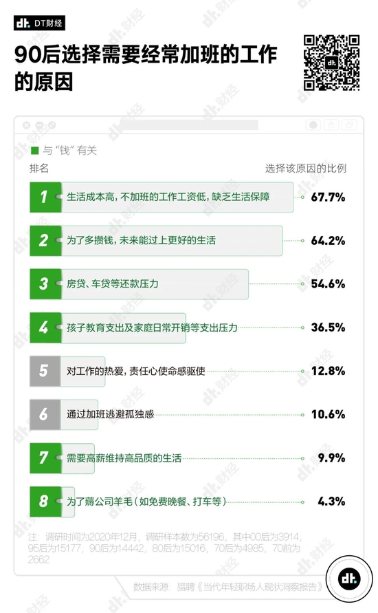 据猎聘《当代年轻职场人现状洞察报告》,近七成90后为了赚钱而忍受加班。在消费主义社会的影响下,人们对于生活水平的要求不断提高,尽可能多地搞钱,以满足自己不断蓬勃的消费欲已经成为常态。