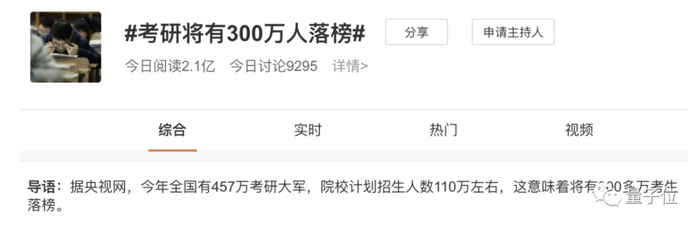 而仅对于今年愈发内卷的考研,有评论认为,大学扩招后很多岗位其实都已经饱和了,所以今年这落榜的300万人中,肯定有不少是为了逃避就业的压力。