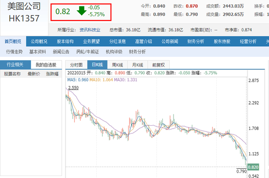 美图当前的问题,或许已经转变为市场还有多少耐心。截至2022年3月15日,美图股价来到最低点,收盘价仅0.82港元,总市值36.18亿港元,与曾经千亿市值的辉煌形成鲜明对比。
