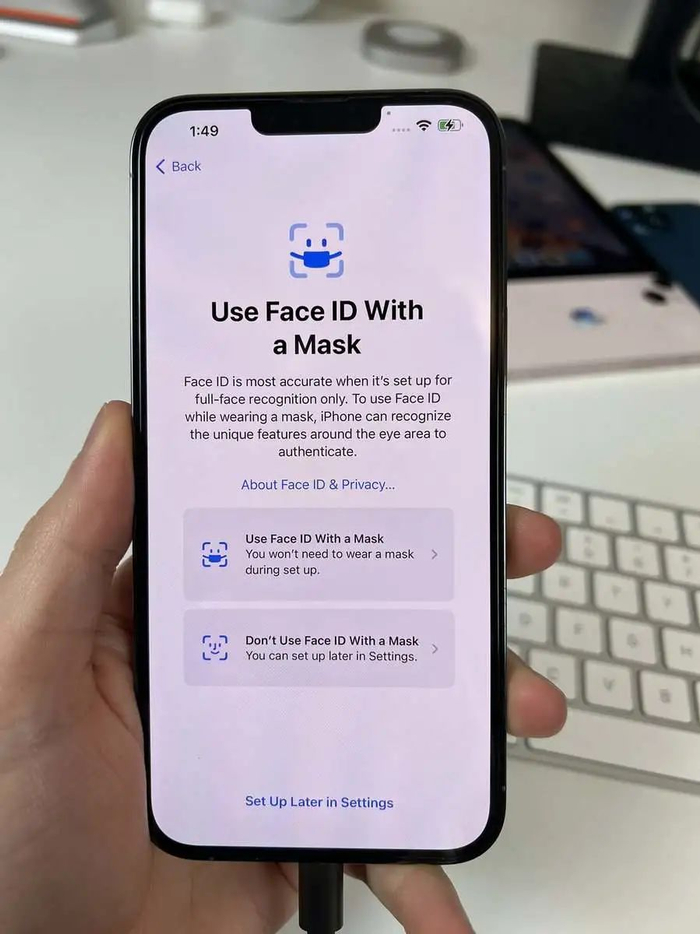 尽管如此,苹果在设置应用程序中警告说,戴着口罩使用Face ID的安全性较低,生物识别系统在使用全脸识别时仍然「最准确」。
