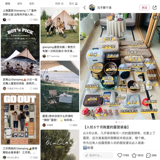 除了露营品牌借助内容度过冷启动,内容平台也在争抢露营消费的第一决策入口。