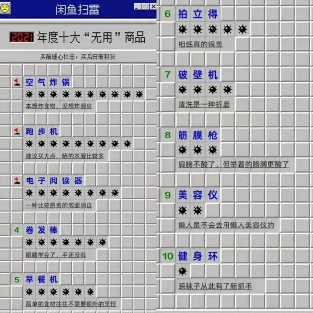 去年年末,闲鱼发布了2021年度十大“无用”商品。