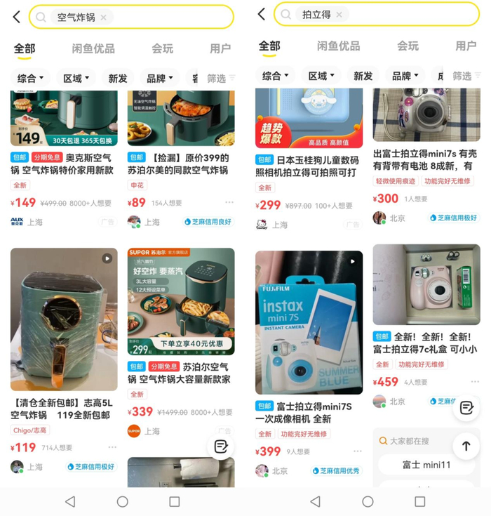 这些“无用”商品只要转手,价格就要打到骨折。一位卖家原价600多元购入的拍立得,在闲鱼上标价420元,依旧无人问津。
