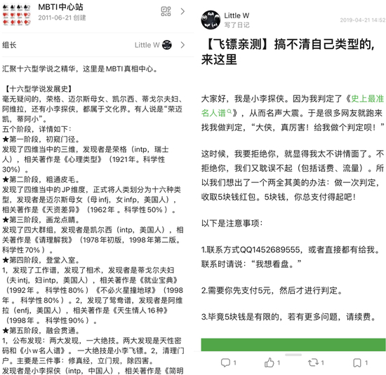 以前忙着追星做数据的,这会爱上了给偶像写MBTI小作文。曾经喜欢星座玄学赛博算命的,这会测上了MBTI十六人格。还有不少网络交友活跃份子,把MBTI类型写进了社交名片。
