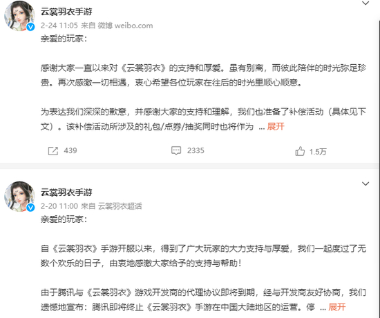 玩家们除了通过国家互联网信息服务平台、工信部、12315等渠道举报外,还在CCTV、中国消费者报等媒体的社交账号下留言投诉。最终,《云裳羽衣》暂时取消了停服计划,相关消息一度冲上微博热搜榜第7位。