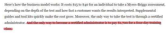 如果你有进一步的需要,还可以注册成为 MBTI 的认证管理员,成为管理员的唯一方式就是花 1700 美元去 CPP 参加为期四天的培训课。