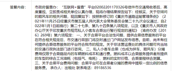 事实上,对于顺风车分摊费用,全国各城市都有相关规定。以《重庆市规范私人小客车合乘出行暂行规定》为例,其中明确提到,“合乘出行分摊费用仅限于车辆燃料成本及通行费,除此之外,合乘平台、合乘服务提供者不得收取时间计费或其他任何费用。车辆燃料成本应按照合乘车辆车型在工业和信息化部登记的综合工况百公里油耗、燃油实时价格、合乘里程计算;通行费应按照合乘路段发生的路、桥通行直接费用据实计算。”
