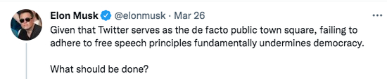 正如马斯克在收购声明中所说的那样,此番收购 Twitter 的最重要目的,就是彻底修改和重写这个平台对于言论管理和发表言论后果的各项规章制度。他在最近各个渠道多次表示过希望保护在这个平台上保护“free speech”。