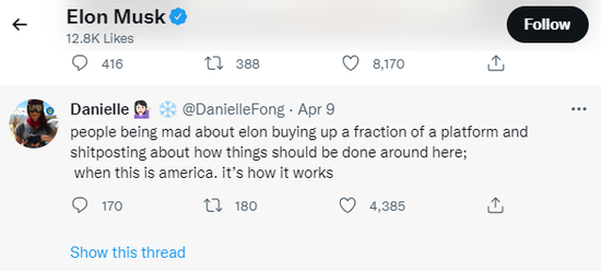 然而在当时,也有人指出了一个关键的问题:如果真如马斯克所说的“被动投资”那样的话,加入董事会已经超过了被动投资的定义。这也是为什么很多观察者都认为,马斯克之前使用“被动投资”的名义,只是为了最大限度避免自己的持股计划,以及后续的“阴谋”,提前被 Twitter 董事会察觉。