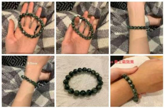 李文秀提出看看价格,一款11.2mm的“观音+大势至”加持的手链价格为956元,而一款“观音能量”加持的手链价格则为656元。最后,李文秀选择了价格较为便宜的观音能量加持的手链。