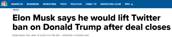 当马斯克宣布有意接管推特时,立即有人质疑他是否会邀请特朗普回到推特,现在应该是有了肯定答案。
