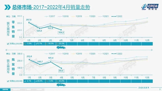来到今年4月,“掉队”的又成了理想。4月以来,受疫情影响,上海等地区工厂停工,大部分新势力都出现了销量下滑。乘联会数据显示,今年4月乘用车市场零售达到104.2万辆,同比下降35.5%,环比下降34.0%。