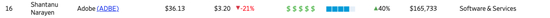 Adobe CEO Shantanu Narayen以3613万美元位列第16。