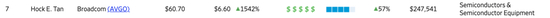 科技巨头中,仅次于库克的是博通的CEO陈福阳,他以6070万美元年薪排名第7,成为进入前10榜单的另一个科技巨头掌门人。