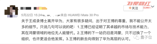 鸿蒙负责人王成录博士,被曝已经离开华为。
