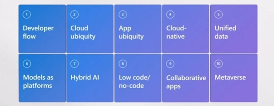 仅用短短43分钟的时间,微软董事长兼 CEO 萨蒂亚·纳德拉 (Satya Nadella) 就完成了今年 Build 2022 大会主题演讲。有如说快板一般,他发布了微软在开发者流程、云计算、微服务、AI大模型商用化、低代码、工业元宇宙等十大领域的50多项全新产品、技术和项目进展。