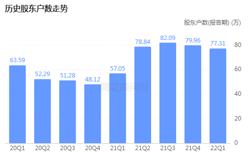 从创下最高点的当季度末股东人数57.05万户开始算起,后续两季披露的人数就在持续上升,2021年Q3季度股东人数已经攀升至82.09万户,约有25.04万户股民折戟于此。