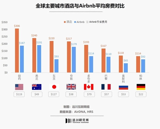 同时,Airbnb的定价和酒店比,其实很低。Statista 2018年统计,在欧洲、北美和日本的大城市,Airbnb的平均房费均低于酒店。比如东京和纽约,平均每晚能节省127美元和119美元。
