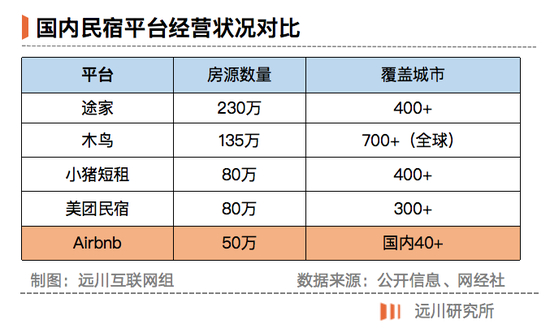 在海外,它与传统的在线酒店预订(OTA)平台Booking和EXpedia构成差异化竞争。Airbnb走非标的民宿路线,相比OTA对酒店17%的抽佣,Airbnb对房东仅抽取3%-5%,价格也更友好[15]。
