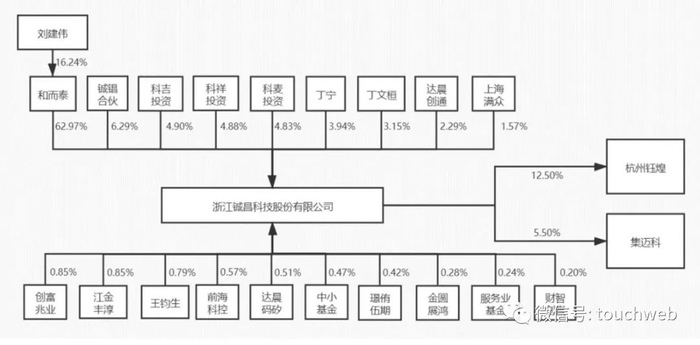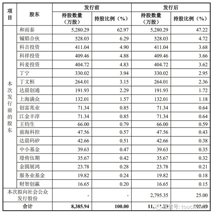 IPO后,和而泰持股为47.22%,铖锠合伙持股为4.72%,科吉投资持股为3.68%,科祥投资持股为3.66%,科麦投资持股为3.62%。